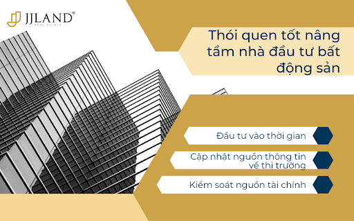 Đầu tư bất động sản là một trong những mảng mang lại lại nhuận cao mà không ai có thể phủ nhận. Tuy nhiên, đã đầu tư thành không phải là chuyện đơn giản, nó phụ thuộc vào rất nhiều yếu tố. Thói quen tốt nâng tầm nhà đầu tư bất động sản. Vậy, những thói quen nào sẽ giúp các nhà đầu tư bất động sản nâng tầm bản thân và các khoản tiền đầu tư. Hãy liên hệ ngay với JJland để được tư vấn.